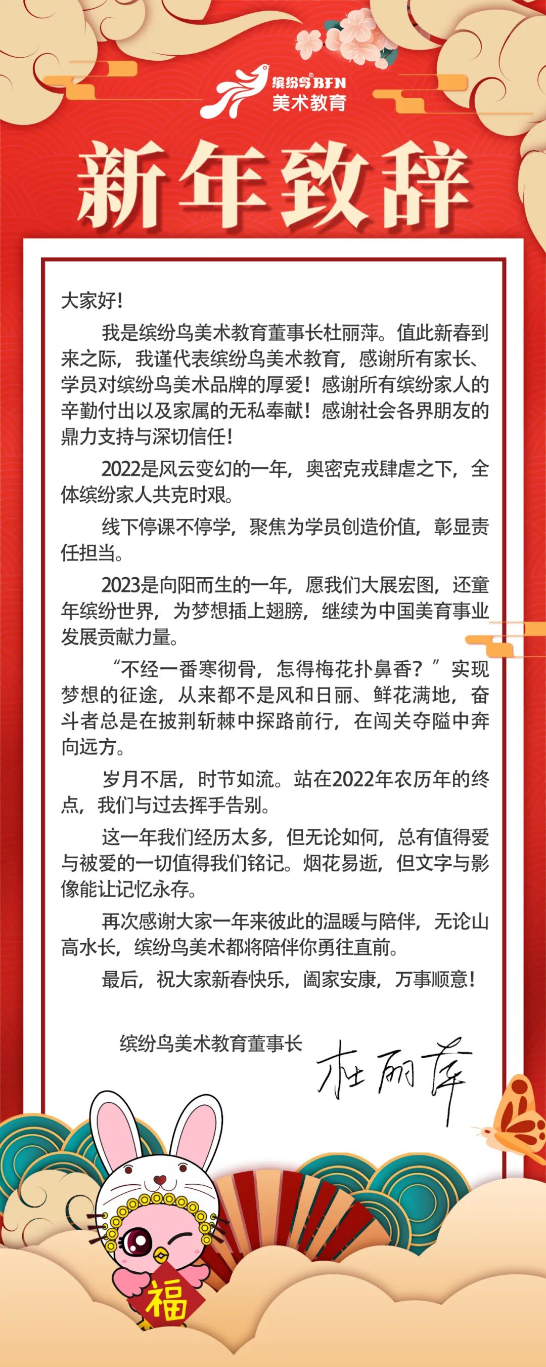 缤纷鸟美术教育集团董事长杜丽萍女士2023新年致辞